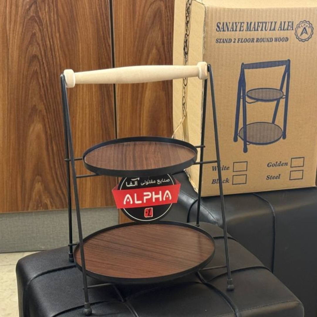 استند دو طبقه گرد آلفا کف چوب دسته چوب