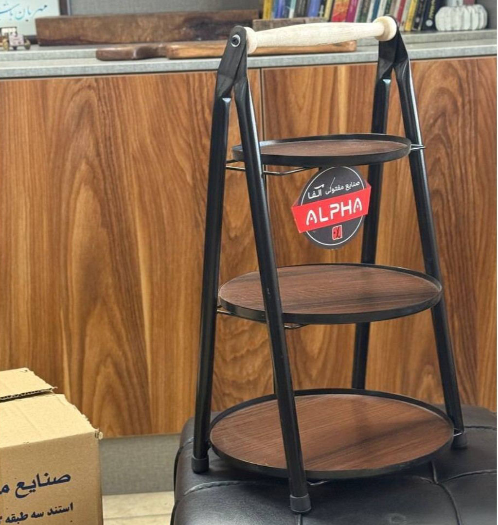 استند گرد 3 طبقه مشکی آلفا لوله ای کف چوب